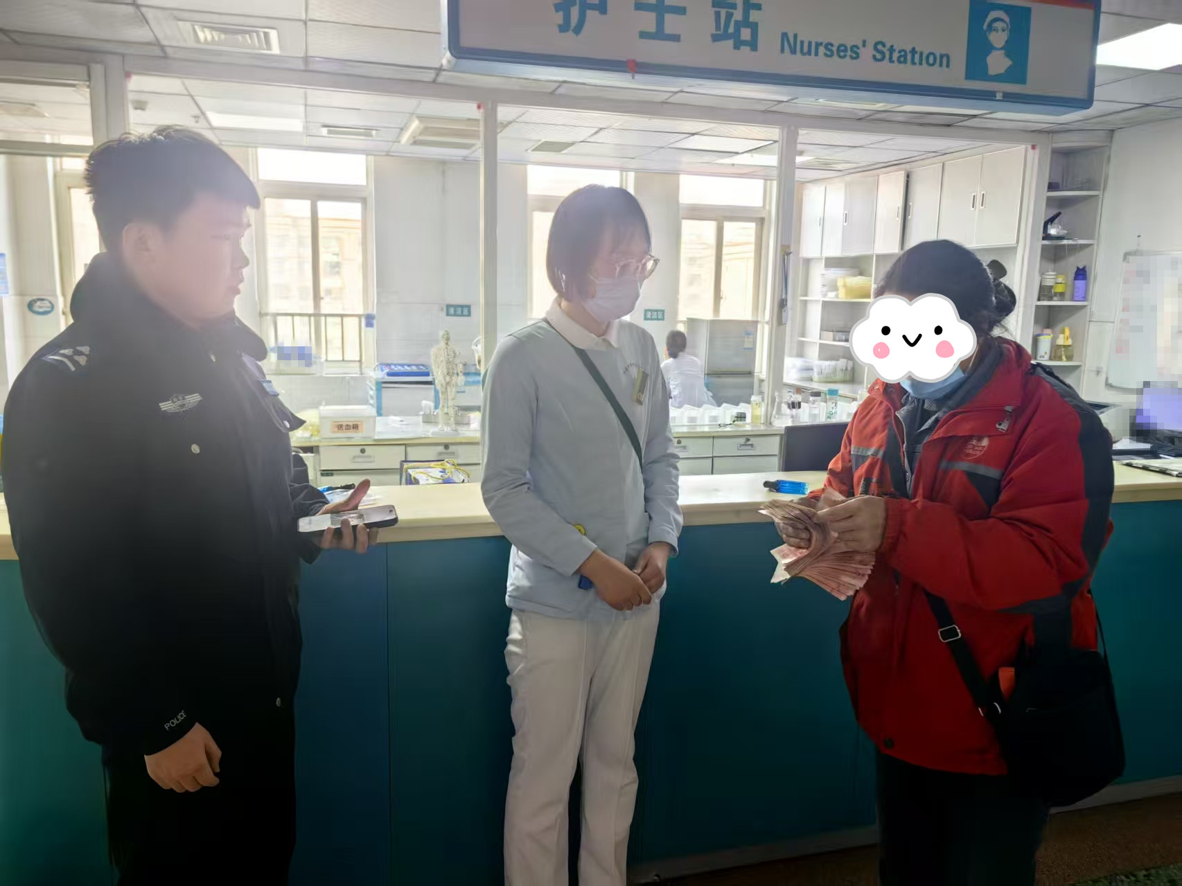 接警后,民警迅速赶到医院了解情况。经现场清点,确认金额为一万元整。警方将现金暂存于护士站,并立即寻找失主。约两小时后,失主焦急赶来。经核实身份与金额无误后,杜宁宁将现金完整归还。失主激动地表示:“面对万元现金能毫不动心,这种品质实在太可贵了!”杜宁宁则谦逊回应:“这只是应该做的,换作别人也会这样。”