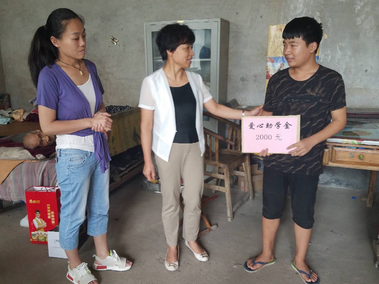 同日,在开学来临之际,工会主席徐吉兰、团委副书记王立燕再一次来到垛石镇范家村孤儿范双喜的家中,为他送去2000元助学金,鼓励他珍惜现有的生活,努力学习,孝敬爷爷,树立正确的人生观、价值观,以期早日回报社会。