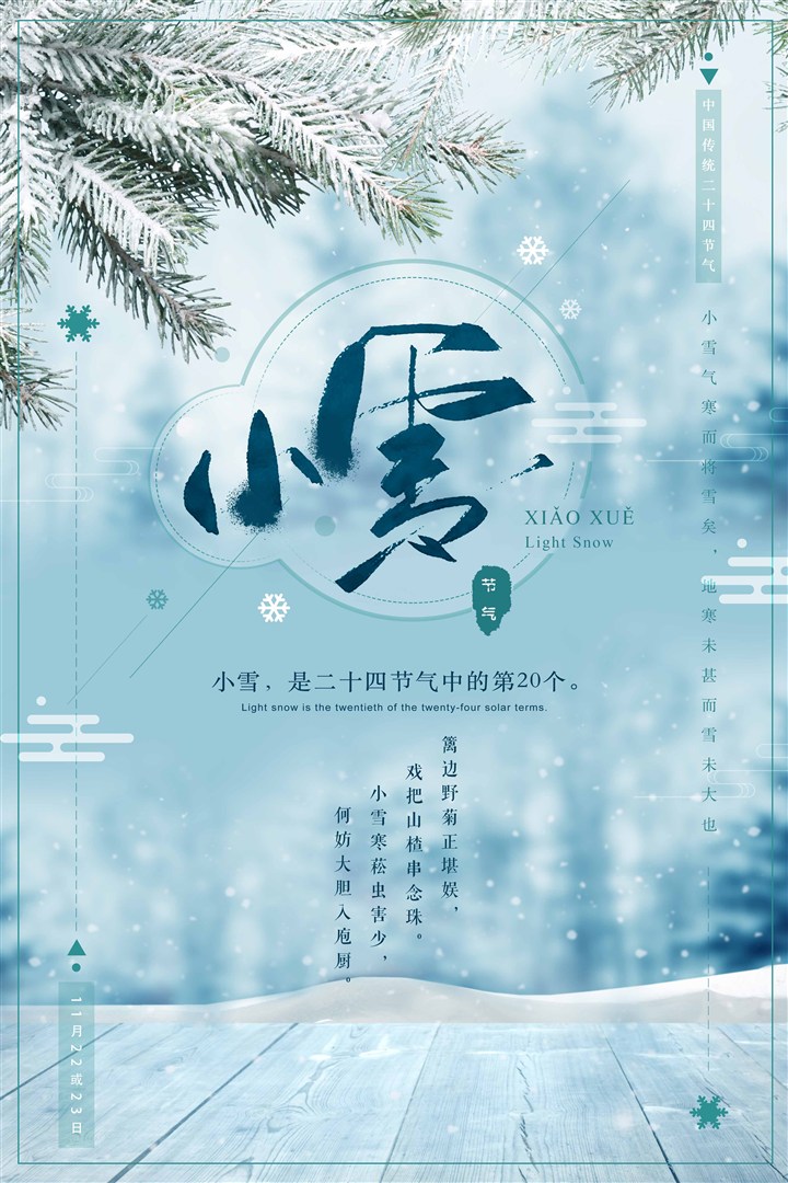 1)寒冷可以导致呼吸道功能降低,是引起感冒、肺炎、老慢支等呼吸道疾病的重要因素。所以,小雪节气应积极运动,强健体质,经常开窗通风,注意保暖;