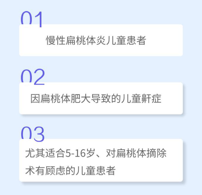 扁桃体烙治法是以特制烙具加热后,蘸以灼烙油,以点、按、滚、触、拨等不同手法对肿大的扁桃体进行施烙,从而刺激扁桃体表面组织,使其炎症治愈并使扁桃体缩小的一种特效方法,具有疼痛轻微、无出血、操作简便、易配合、安全、疗效显著的特点。