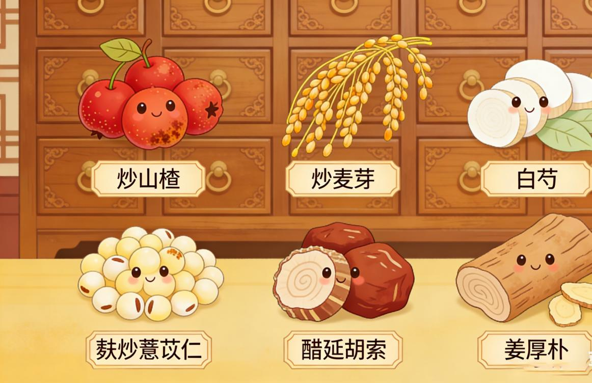 麸炒薏苡仁:健脾祛湿、温中止泻,经麸炒寒性全无,专攻脾虚便溏、腹胀、食欲不振。